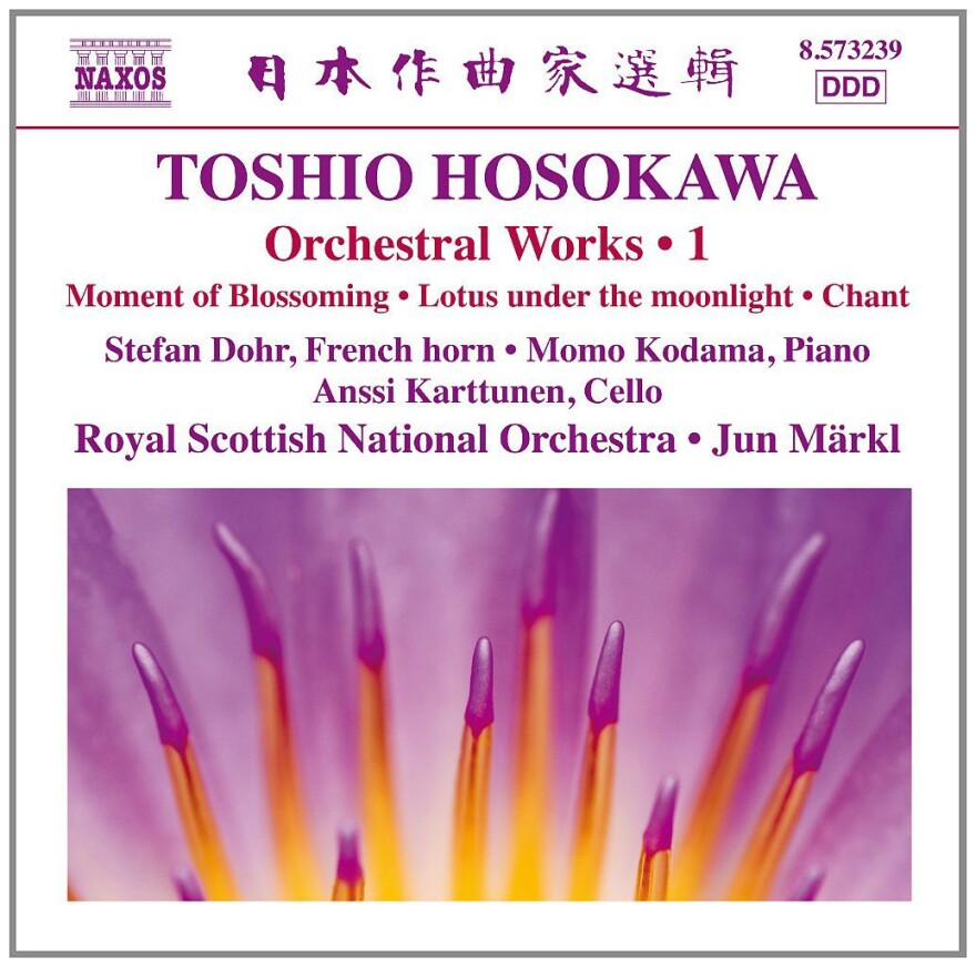 As far back as Vivaldi's Four Seasons, nature has inspired composers to write concertos. In his captivating Horn Concerto from 2010, subtitled "Moment of Blossoming," 59-year-old Japanese composer Toshio Hosakawa imagines the orchestra, even the concert hall, as a pond opening to the sky, and the solo horn as a lotus blossom whose roots are anchored in mud far below the surface. A sustained thread of tone and soft pings of percussion depict calm water. Sliding strings lend a gentle breeze. The mysterious flower, an iconic symbol with spiritual associations in Asian cultures, eventually achieves its purpose and bursts into what Hosokawa calls "beautiful, jewel-like blossoms." The real star in this new recording is Stefan Dohr, principal horn player of the Berlin Philharmonic, for whom the piece was written. Color, breath control, perfect intonation and above all a cinematic sense of atmosphere, Dohr has it all in this piece that slowly, powerfully unfolds.