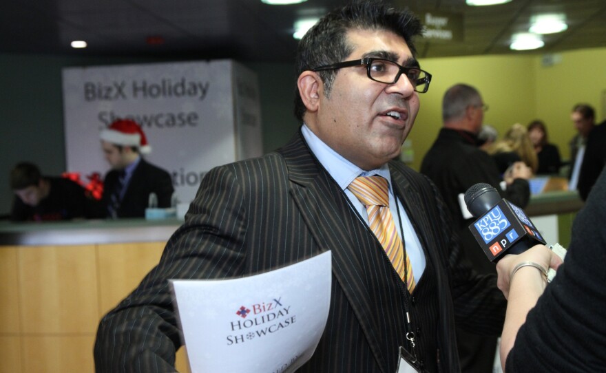He has bushy eyebrows, a bright purple-and-yellow striped tie. And he seems to know everyone in the room. Bob Bagga, the CEO of BizXchange warmly greets pretty much everyone he encounters at this party.