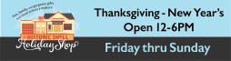 Open: 12-6PM, Fridays – Sundays Thanksgiving – New Year’s Eve!