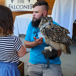 • Meet live raptors with The Falconer and visit friendly chickens from Animal Encounters Petting Zoo.
