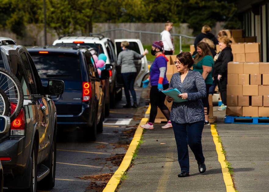 Cars soon lined up behind her, snaking out onto Southeast 208th Street in front of the school — an eye-opening example of the importance of school meals as a lifeline for families right now.