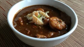 All I had to do was tell Nancy Leson I'd made a pot of gumbo, and right away she's saying her husband Mac's is better. Even though...Even Though... she's…
